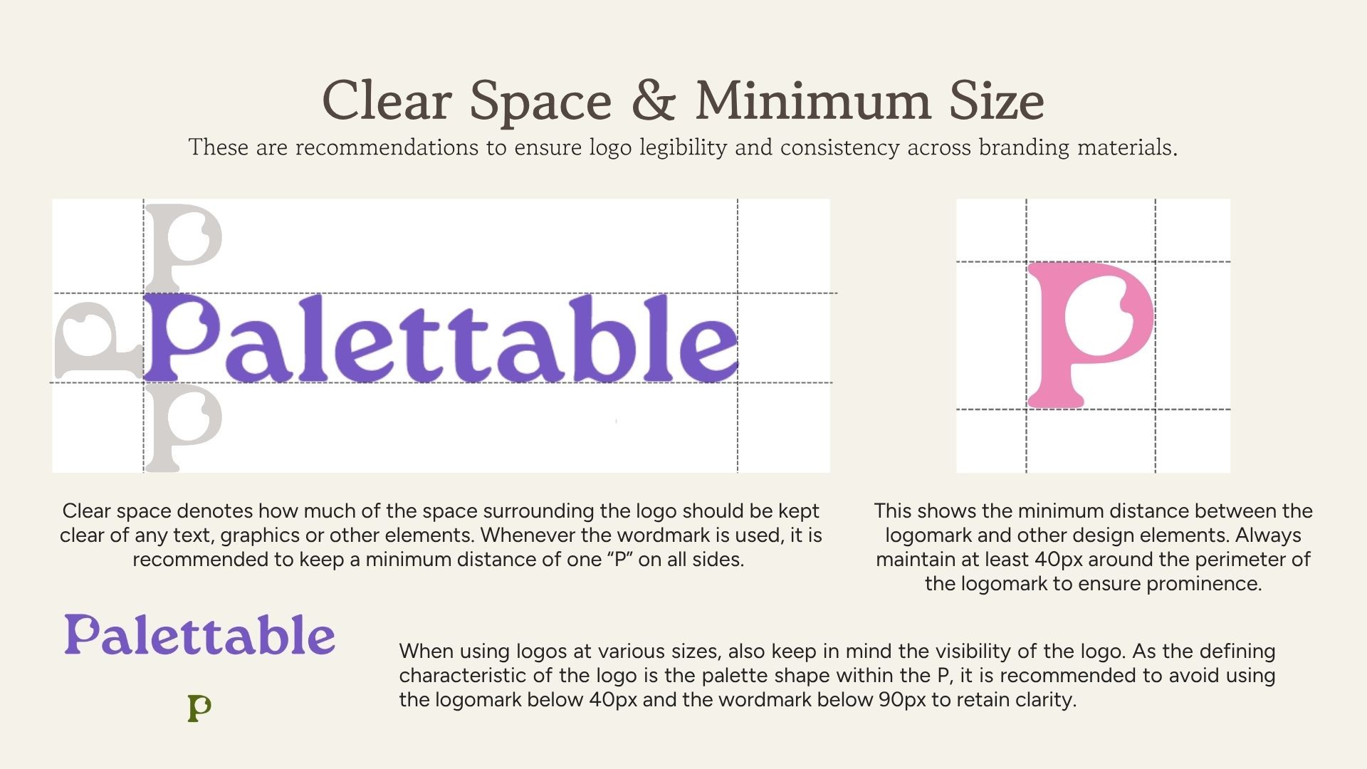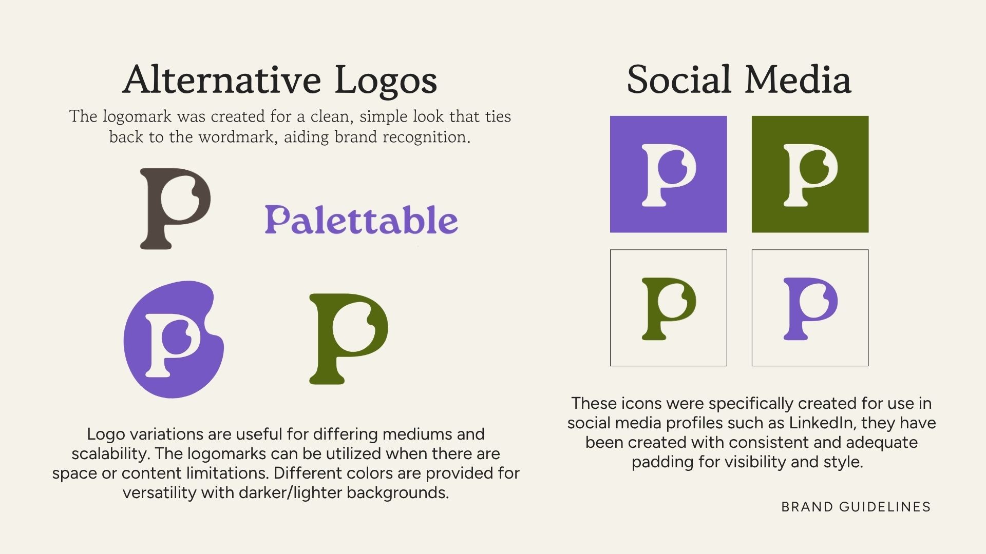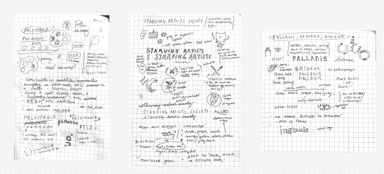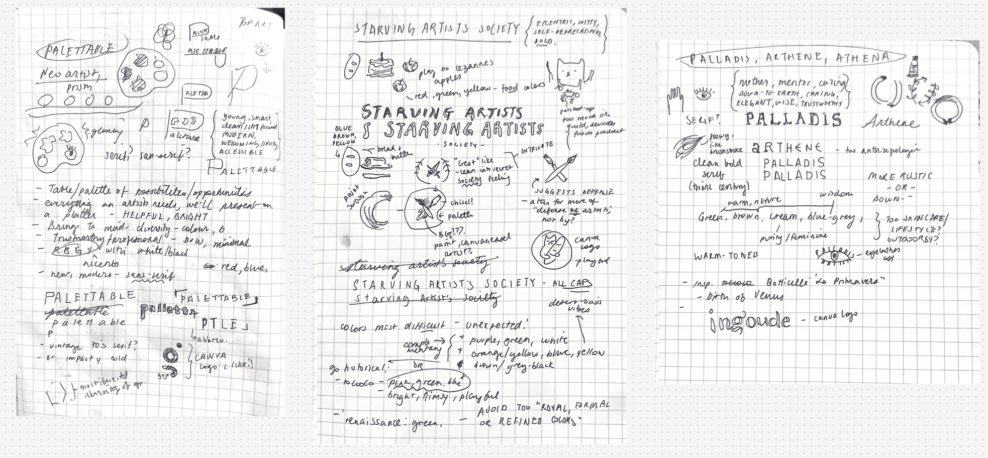 Sketching helped pressure-test each finalist as a logo, typeface, and color story. Palettable won out: a palette of opportunities, tailored to individual taste. The visual language followed naturally, and each decision tied back to the audience.