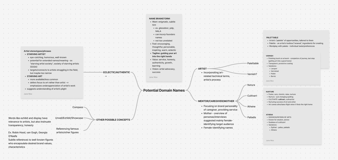 I mapped dozens of candidates across three distinct directions: names rooted in the artist's identity, in mentorship and care, and in the art world itself.