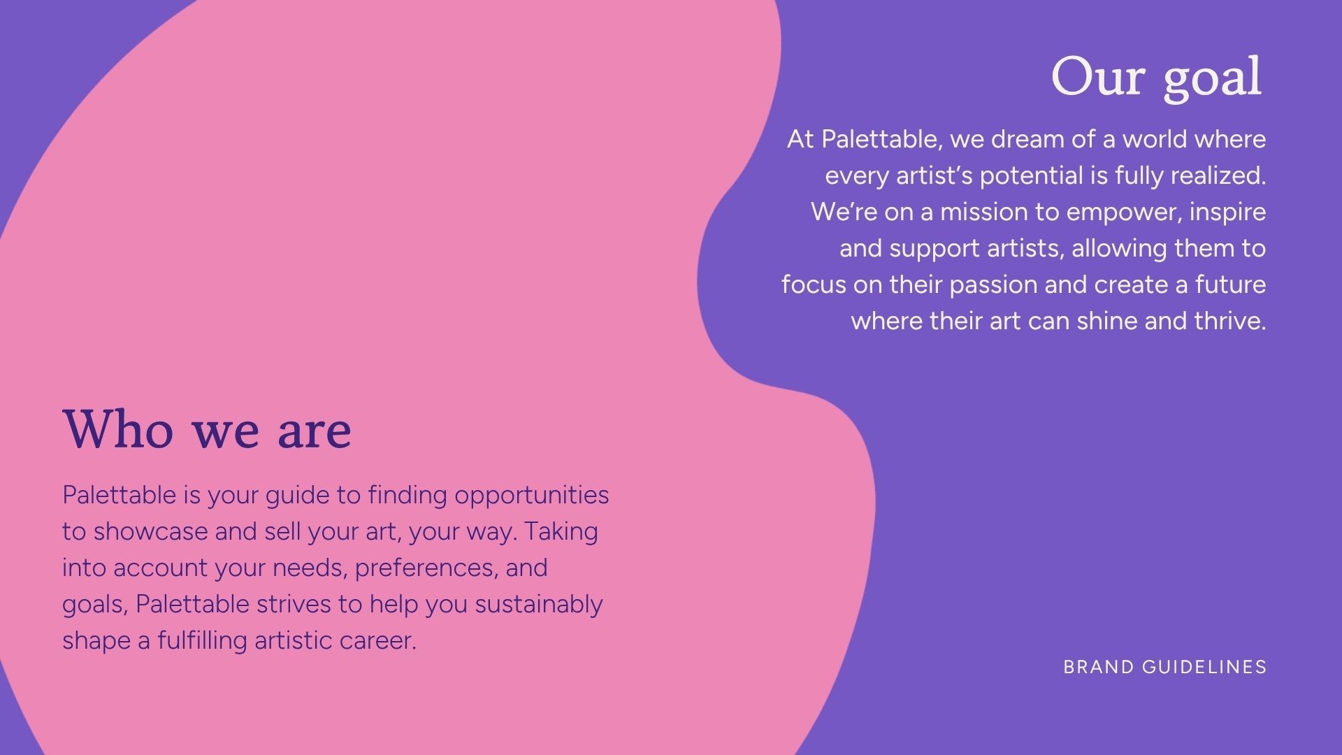 Independent artists navigating a business that rewards connections as much as craft rarely have a dedicated resource for discovering where to show and sell their work. Palettable was built to change that. My job was to make sure the brand felt like it genuinely belonged to them.
