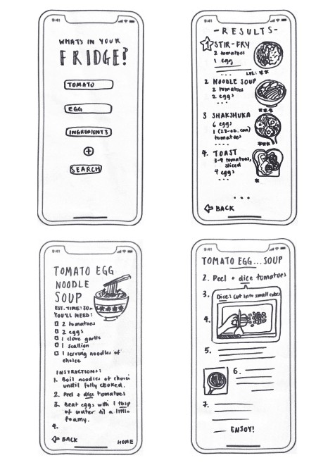 I presented a fully interactive prototype that allowed users of any level to cook based on their personal skill level, taste, and pantry!